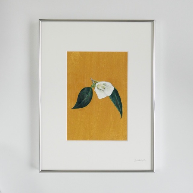 侘助(ワビスケ) 原画 ※am coffee stand にて開催される個展で展示予定です。 ※引き渡し・配送は 4月1日以降 となります。 ー商品説明ー ・画材 アクリル絵の具 ・素材 キャンバス ・原画サイズ 227×158mm×3mm ・額縁サイズ 290×381×27.5㎜ (シンプルなシルバー額) ・2014年制作 シンプルなシルバー額に入れてお届けします。そのまま壁や棚に飾れます。 無料でナチュラルペーパーとゴールドの紐でラッピングしてお届けします。プレゼントにも最適です。 ご注文から5日以内に発送いたします。送料は無料です。 ー作品についてー アクリル絵の具で丁寧に描かれた、maruuの一点もの原画です。 背景に金を塗り重ね、侘助の白い花と生き生きとした緑の葉を繊細に表現しました。 ひっそりとうつむき加減に咲く花が清らかで明るい雰囲気をお部屋にもたらします。 フレーム付きでお届けするため、届いたその日から飾れます。 季節を問わず、お部屋のアクセントやプレゼントとしても喜ばれる作品です。 ー作家についてー maruu(まるう) 福岡を拠点に活動するアーティスト。身近な自然や風景から着想を得て、アクリル絵の具や墨で命の輝きと静けさを繊細に描き出しています。 ー飾るシーンのご提案ー ・リビングや寝室:日常に自然な彩りをプラス ・カフェやサロン:温もりと癒しの空間に ・病院・施設:爽やかで心穏やかな空間作りに ーご注意事項ー ・個展などで展示された原画です。 ・モニター画面と実物で色味が若干異なる場合があります。 ・高温多湿・直射日光の当たる場所での設置は避けてください。 ・フレームはサービス品です(商品代金には含まれておりません)。 ・フレームには細かな傷・擦れ・個体差がある場合があります。 ・フレームの状態や作品の色味・イメージ違いなど、お客様都合による返品・交換はお受けできません。 ・作品の状態や色味について気になる点がある場合は、ご購入前にお問い合わせください。 ※本作品は「花ー心の動きー」シリーズ作品の一枚です。 ー「花ー心の動きー」シリーズコンセプトー ただまっすぐに明るい方へ よろこんで咲き、命を繋ぐ。 その心が美しいから、花はとても美しい。 見る方向を間違えず、花の心はどこまでも伸びて行く。