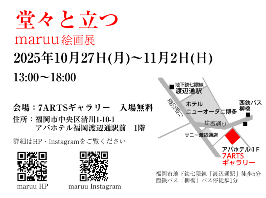 会場:7ARTSギャラリー(アパホテル福岡渡辺通駅前 1階/ホテルの入り口からお入りください)
