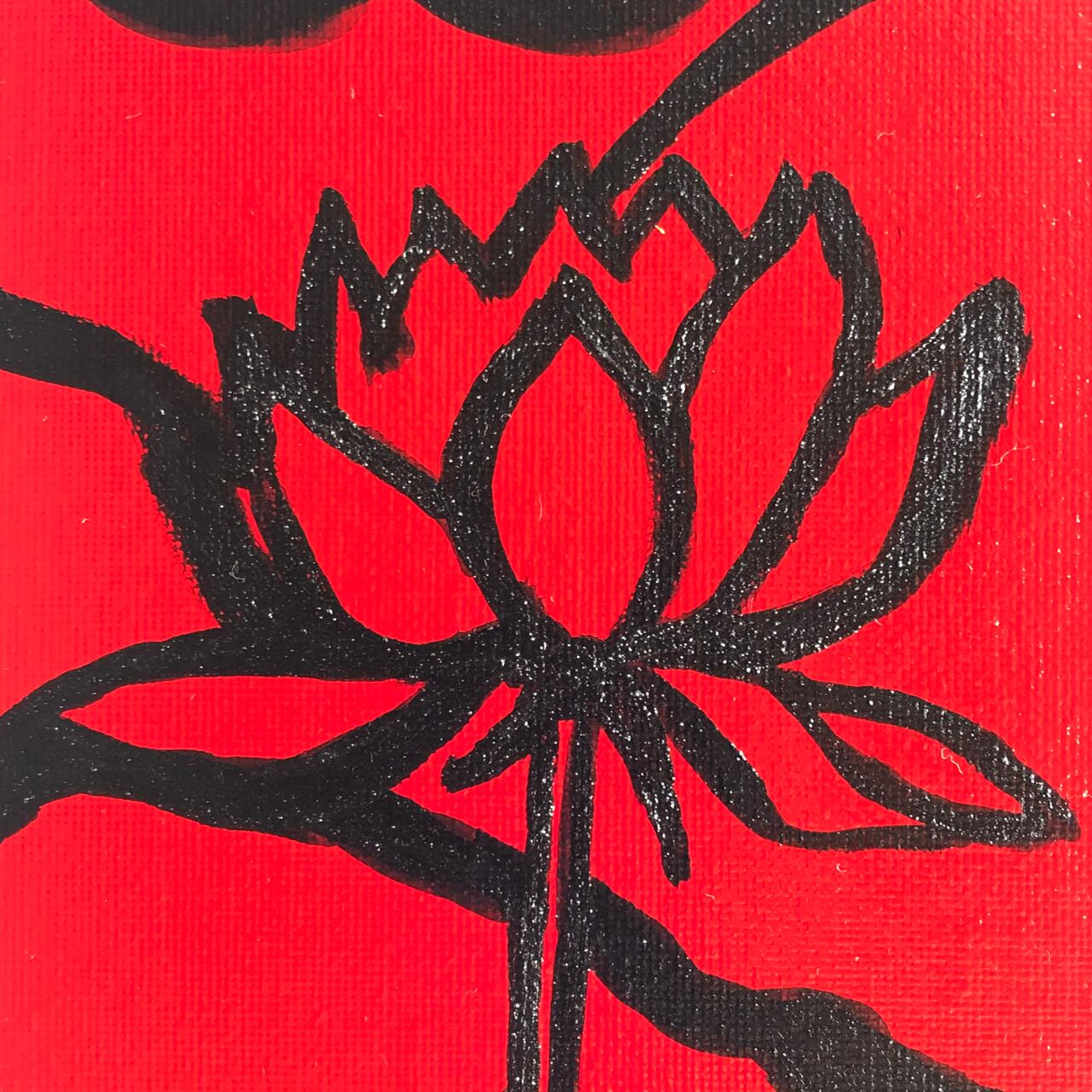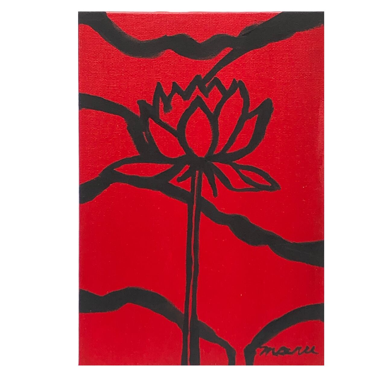 黒く力強く描かれた蓮の姿。