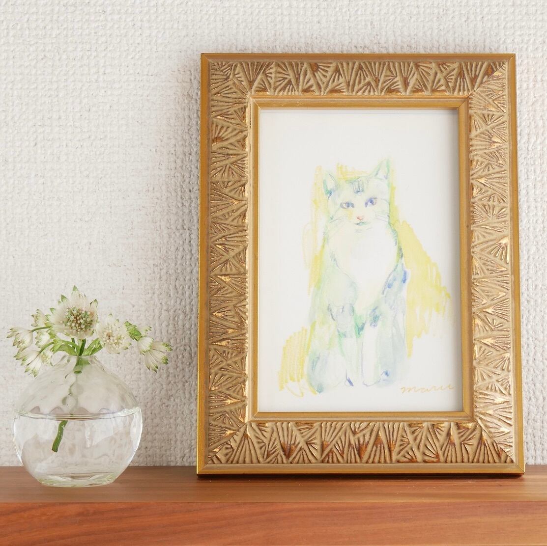 「猫の絵no.2」 原画 フレーム付き 色鉛筆画(アート作品・絵画)