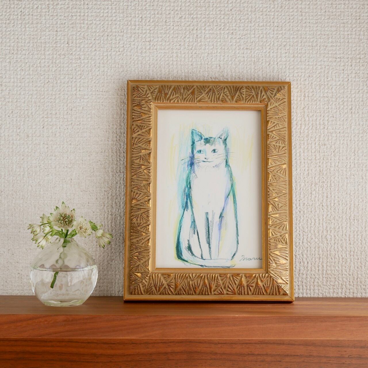 「猫の絵no.39」 原画 フレーム付き 色鉛筆画(アート作品・絵画・猫の絵)