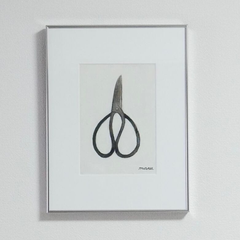 「花鋏」 原画 フレーム付き アクリル画 (アート作品・原画)