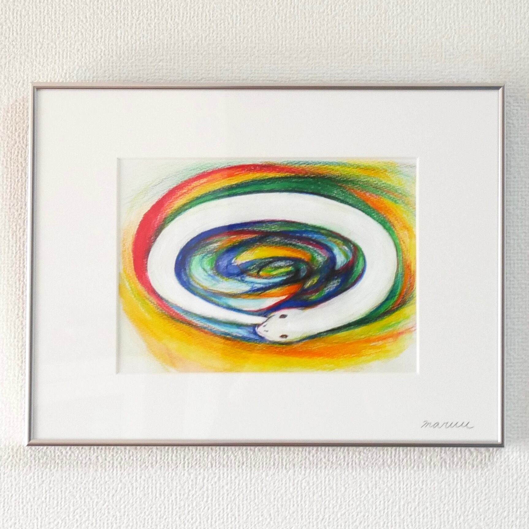 令和7年・乙巳の年に向けて描かれた、白い蛇の手描きアートです。